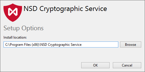 You can change the installation folder (by default: %PROGRAMFILES(X86)%\NSD Cryptographic Service). To do this click the Settings button. In the opened window click Browse and select a new folder. Click the OK button and the strat installation window will be displayed (see Figure 1).