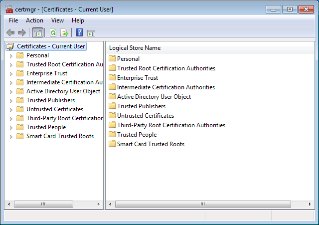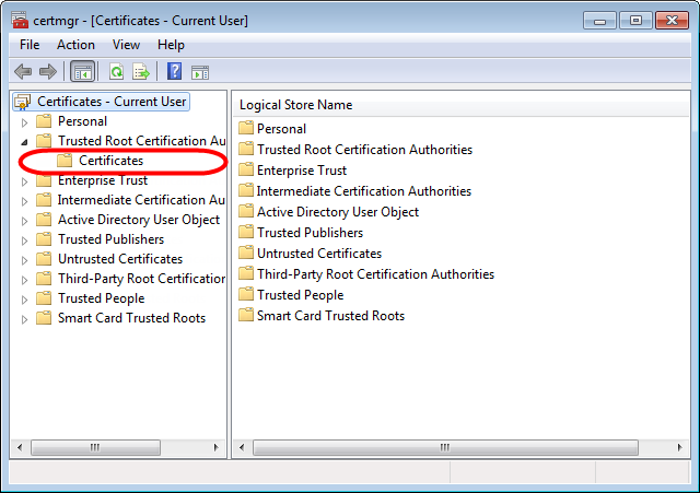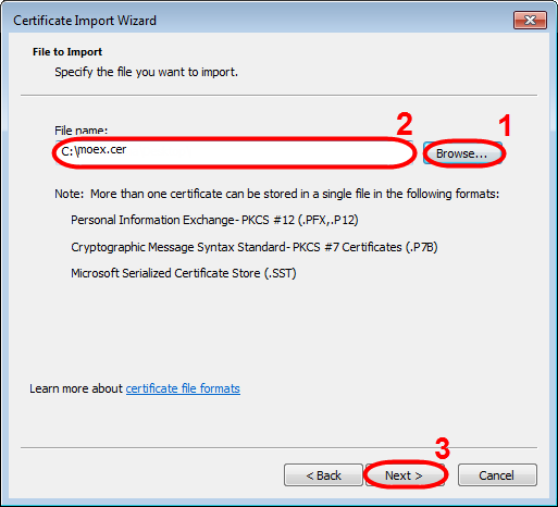 Root certificate of the Moscow Exchange (“Certification center,” serial number 40:40:10:A8:D9:EB:39:2C:09:5D:7D:8E:50:AB:39:BD ) can be exported from the Certificates storage. To do this:
