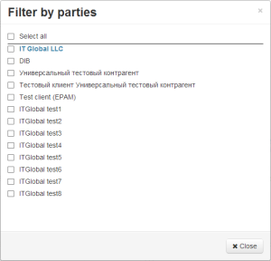 To start viewing messages, the master agreements of which have the necessary parties playing certain roles, click on the button Select on the filter settings bar (Fig. 15).