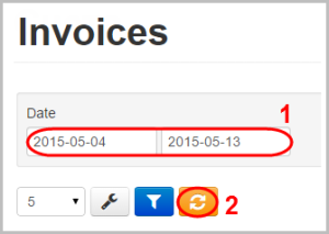 The system displays the invoices for the last 100 days. To display data for a specific period, you need to specify a date range (Fig. 1,1), then click the Refresh button (Fig. 1,2).