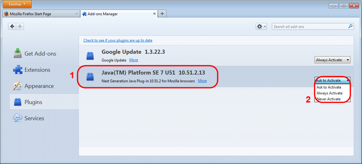 if the version of Java is outdated, open the Java Control Panel through menu Start→Chek for updates and update the applet (Fig. 2);