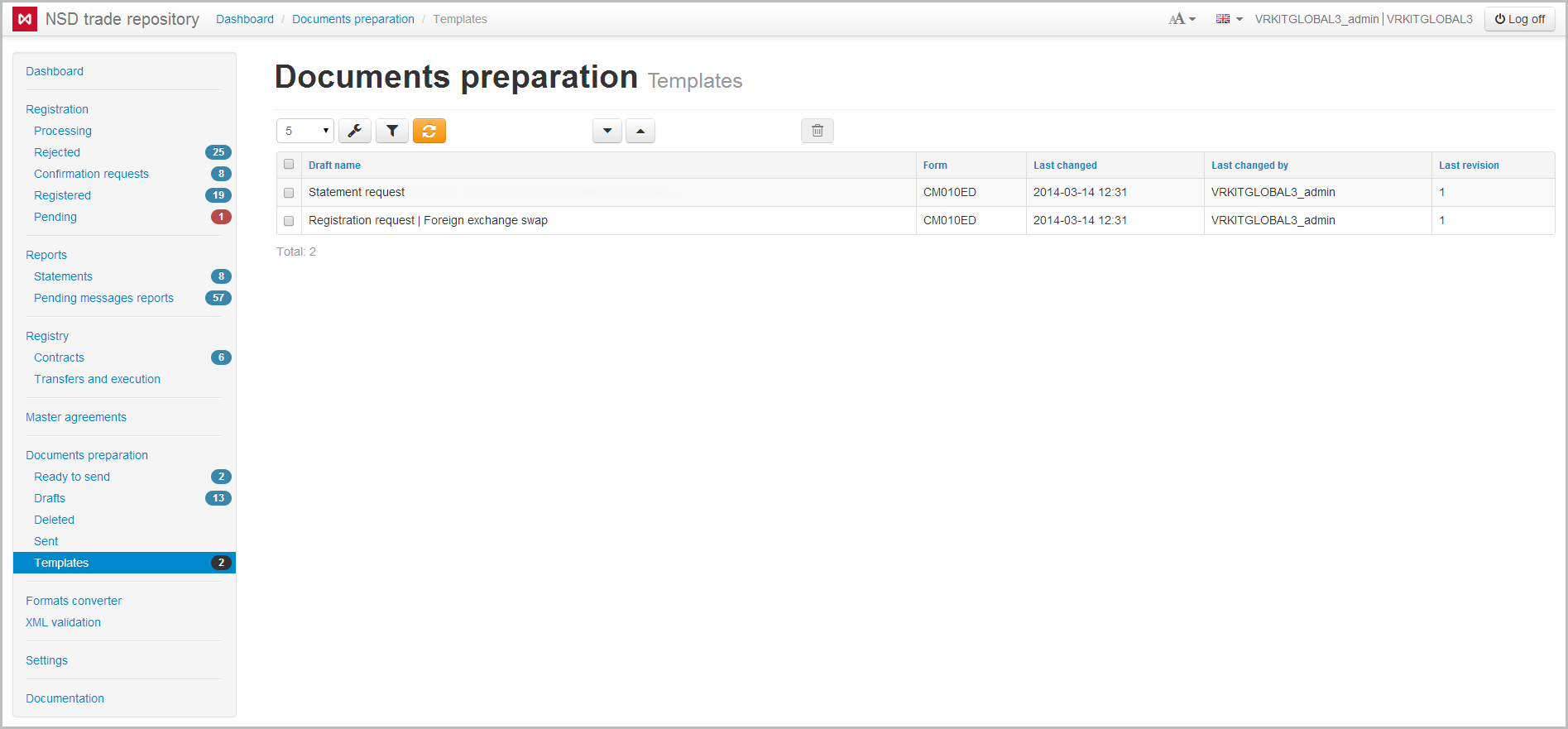 The Web-client allows creating electronic documents with pre-filled data based on templates. Message templates are displayed in two forms: Preparation and Templates.