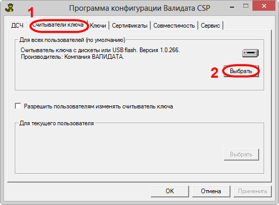 СКЗИ Валидата CSP предназначена для расшифровки и формирования ЭП с помощью закрытого ключа. Как правило, для защиты информации закрытый ключ хранится на внешних накопителях (дискетах, usb-флеш). Для чтения ключей с внешних устройств в СКЗИ Валидата CSP используются программные модули – считыватели ключей. Для его выбора следует: