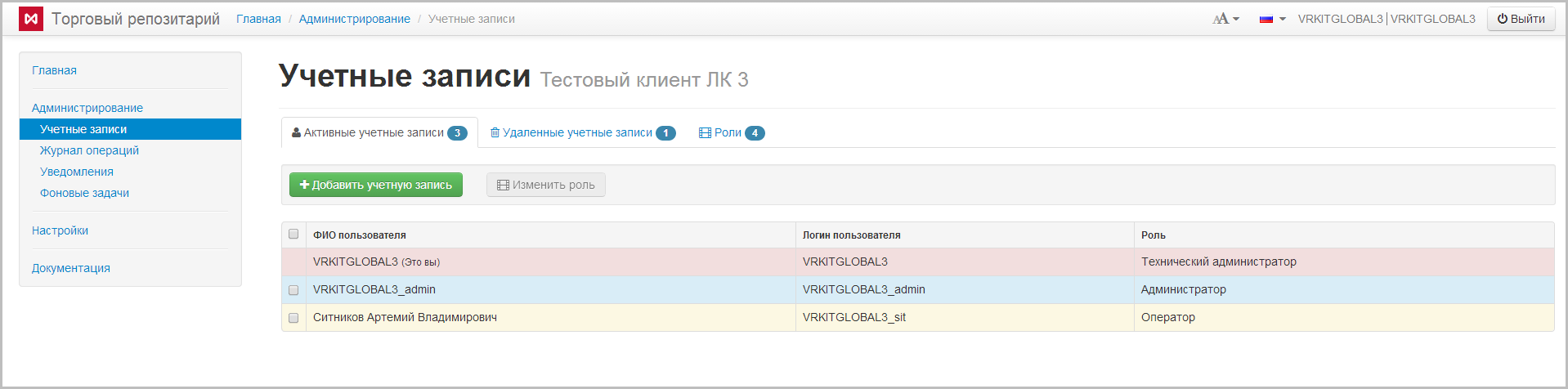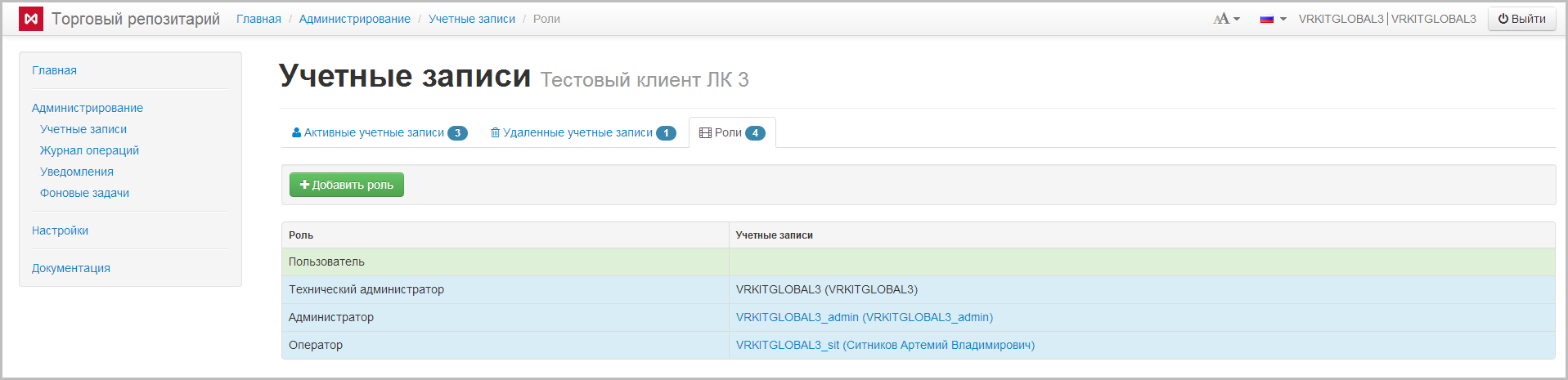Администрирование Web-кабинета Репозитария осуществляет Технический администратор либо учётная запись с ролью, в которой есть соответствующие права.