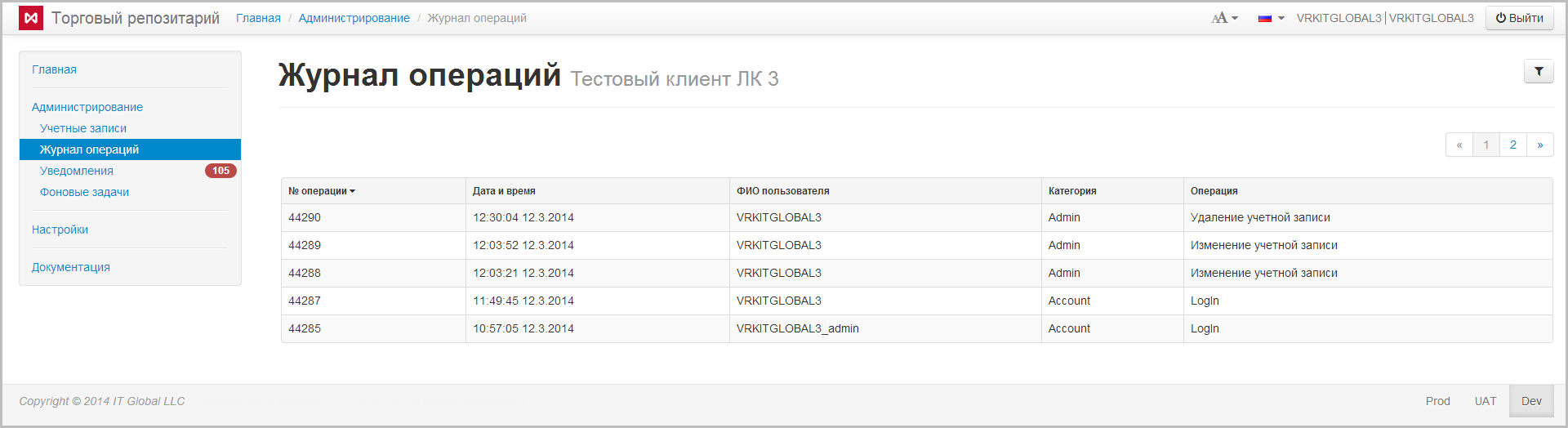 | 2 | По учетным записям | Фильтр используется для отображения операций, которые были выполнены под конкретной учетной записью |