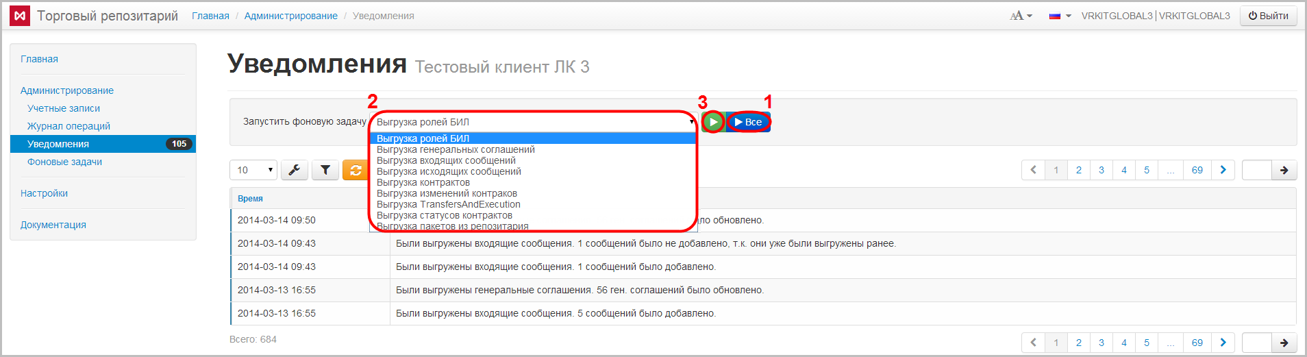 Для запуска всех операций следует нажать кнопку (рис. 15,1). Для запуска задач определенной категории необходимо выбрать из раскрывающегося списка категорию (рис. 15,2) и нажать кнопку (рис. 15,3).