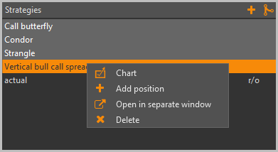 Для торгового счета по каждому базовому активу автоматически создается стратегия actual. В ней содержатся действительные позиции, загруженные из торговой системы. Данную стратегию нельзя удалить. Позиции стратегии не доступны для редактирования, перемещения в другие стратегии.