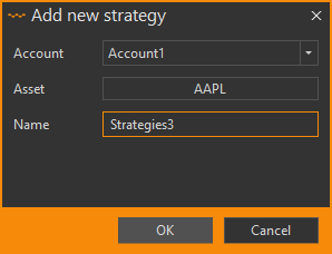 В форме Add new strategy нужно указать счет, базовый актив, ввести название стратегии и нажать кнопку OK.