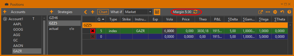 OptionWorkshop позволяет рассчитывать риски по отдельным стратегиям в текущих параметрах гарантийной системы. Для расчёта может использоваться как локально установленный модуль расчёта рисков, так и модуль, работающий на сервере компании. Расчет производится при нажатии кнопки
